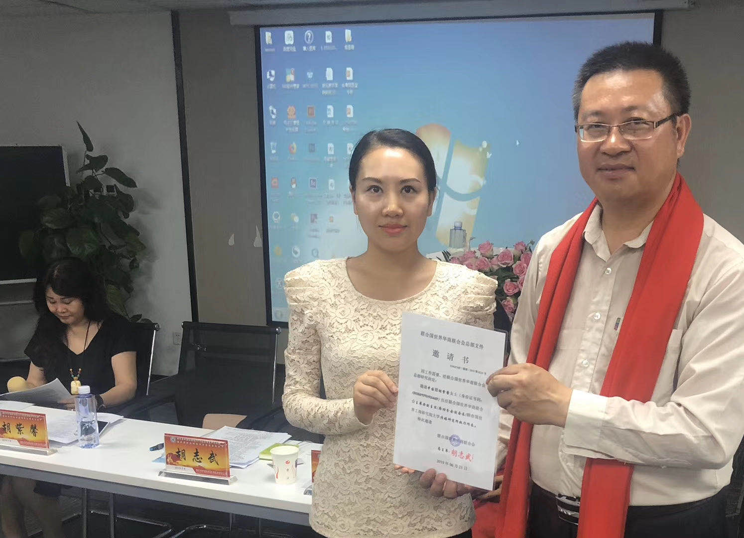 华商国医堂(北京)健康产业科技有限公司李来东董事长出席演讲-“华商国医堂大健康全国布局”。喜瀛洲健康集团总裁高雪薇出席主持并演讲-“健康,我们生命中最宝贵的财富”。联合国华商朝阳分会执行会长屈秀晗出席演讲“五行能量”。联合国华商盐城分会会长殷岩泉出席演讲-《盐城市民间文化研究会文旅项目寻求合作》。北京西城区第35中原教导主任韩文政及喜瀛洲健康集团副总裁兼招商总监宋润芝也出席并即兴演讲。会议期间胡志武博士后还介绍了新书《绿色经济学》/《平台型管理》/《极简经济学》的内容简况并发布了筹备出版的新闻。胡志武博士后还介绍了2019首届华商春晚状况并发布了2020第二届华商春晚新闻。胡志武主席还介绍了胡氏茅庐国际财团原始股权拥有规则并现场给赵景玲、凌玲、李来东、刘鹏、任永华、徐月珍及李鹏等人发放股权证并合影留念。其中赵景玲及凌玲各获赠胡氏茅庐绿色生态城原始股权2万股并各另代为持有胡氏茅庐旅游开发原始股300万及100万股。新加坡游学博士刘鹏、美国游学博士任永华、俄罗斯游学博士赵景玲、中泰旅行网络科技北京有限公司副总裁陈海英、网络作家/画家贺晴及联合国华商办公厅李文均也出席服务并演讲。中国报道感知中国记者胡雅成先生(联合国全球胡氏宗亲联盟秦皇岛副总干事)及华商国医堂李晨女士 等50余位嘉宾出席了该活动。胡志武/刘鹏/赵景玲/任永华等部分嘉宾还出席了论坛晚宴及歌厅K歌活动。